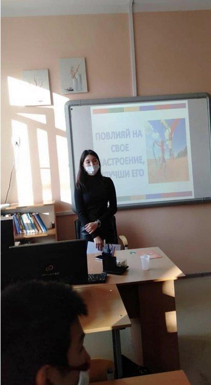 Для профилактики тревожного поведения ребенка необходимо создание адаптивных условий для формирования безопасной и комфортной среды в образовательной организации и в семье. Чтобы учащиеся нашего лицея не чувствовали себя одинокими, беспомощными, чтобы у них не возникало чувство непонимания со стороны ближайшего окружения психологом лицея Бекзадиновой А.Б. была проведена с учащимися 7 классов беседа на тему "Повлияй на свое настроение, улучши его".
