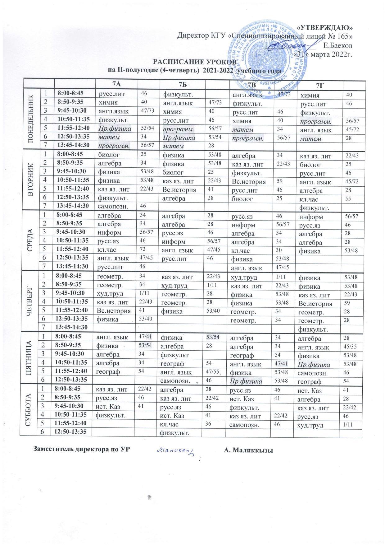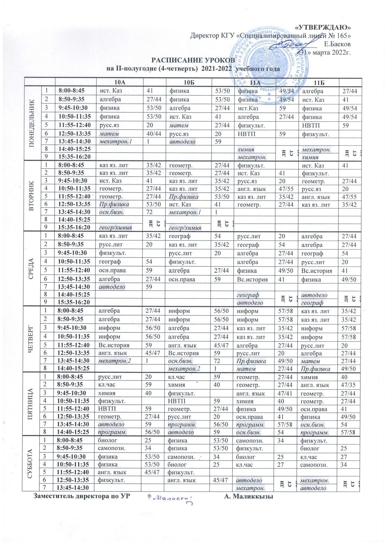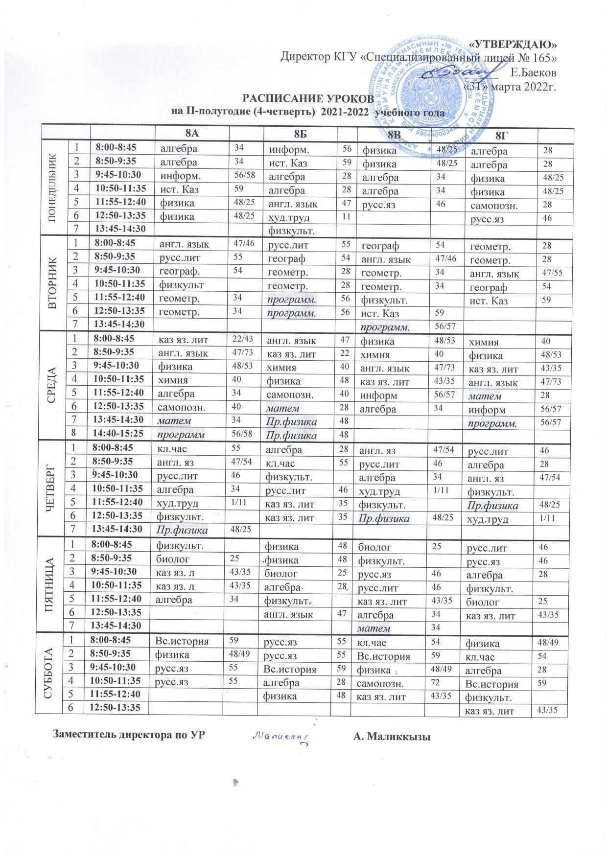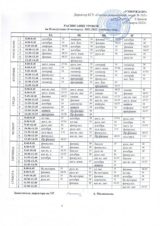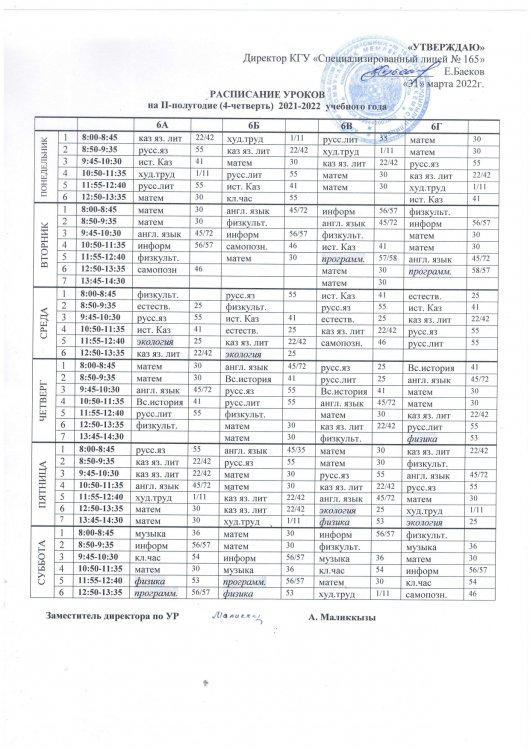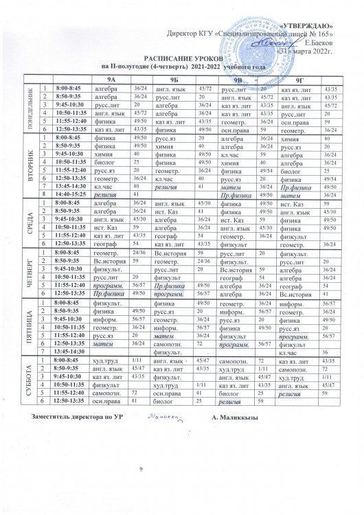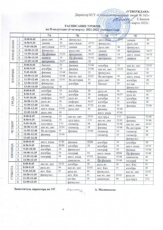 30 март 2022 0 1 2 3 4 5 Расписание уроков на IV четверть 2021-2022 учебного года raspisanie-4-ch.pdf [4,57 Mb] (cкачиваний: 15) Посмотреть онлайн файл: raspisanie-4-ch.pdf Осы беттің QR-коды:QR-код этой страницы: