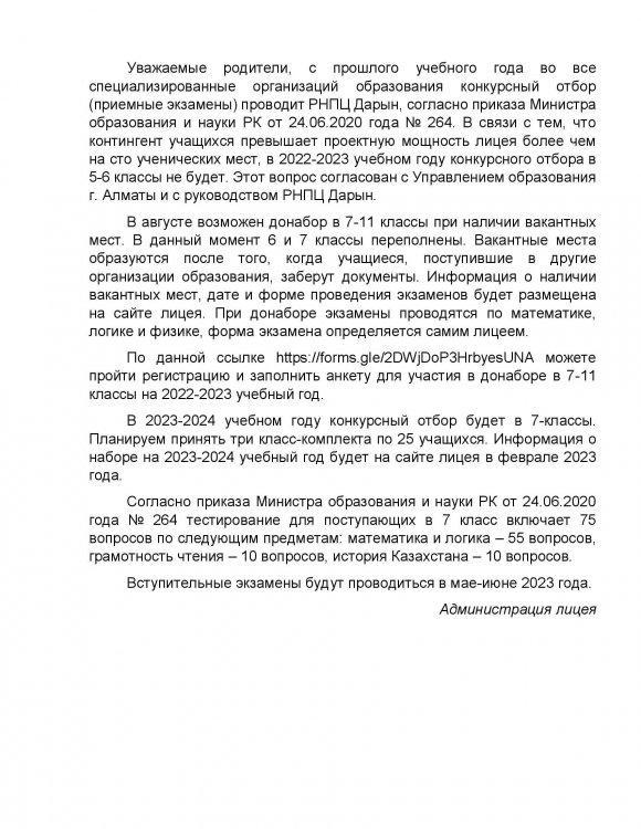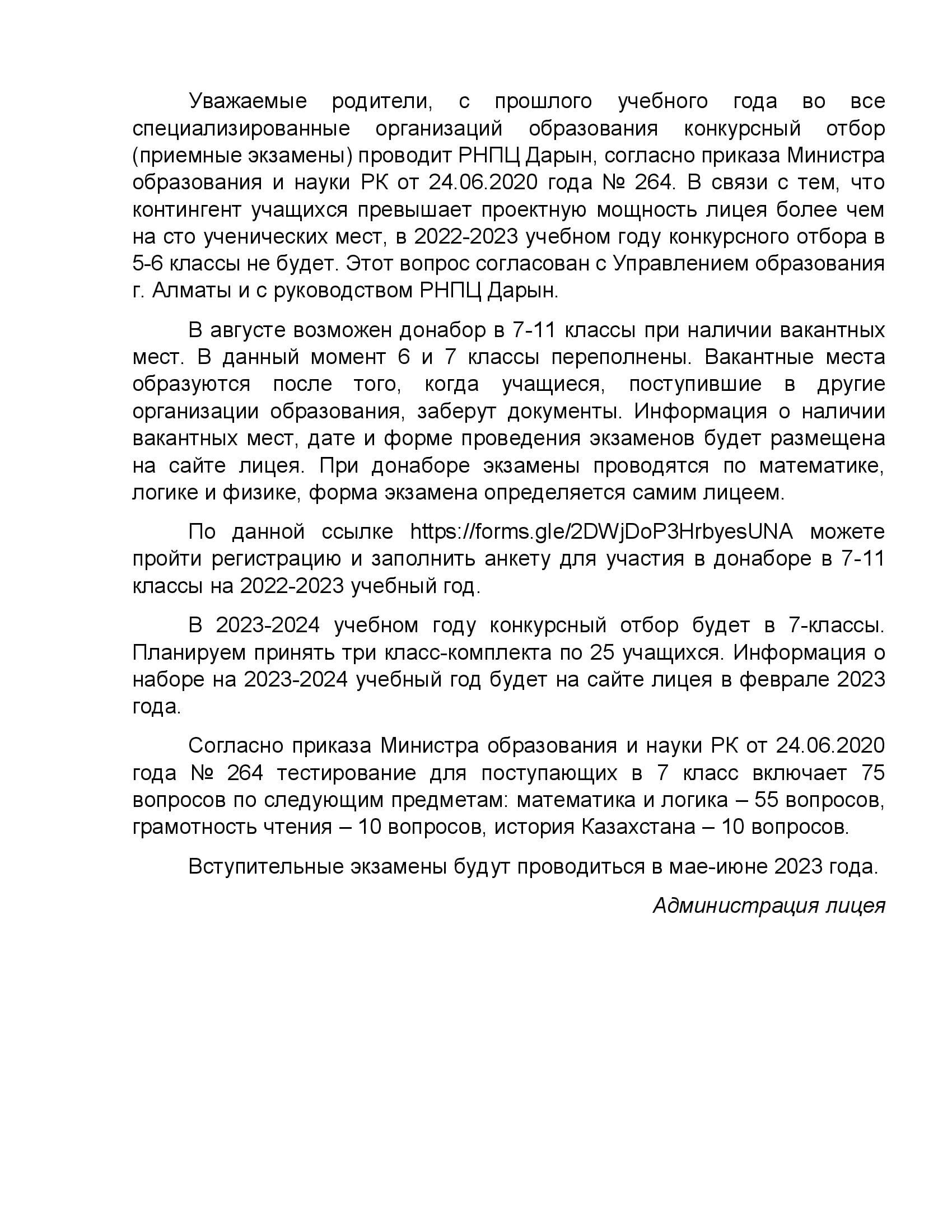 29 апрель 2022 0 1 2 3 4 5 ИНФОРМАЦИЯ ДЛЯ ПОСТУПАЮЩИХ В ЛИЦЕЙ na-sajt-po-priemu.docx [13,89 Kb] (cкачиваний: 468) Посмотреть онлайн файл: na-sajt-po-priemu.docx Анкета для участия в донаборе в 7-11 классы на 2022-2023 учебный год Осы беттің QR-коды:QR-код этой страницы: