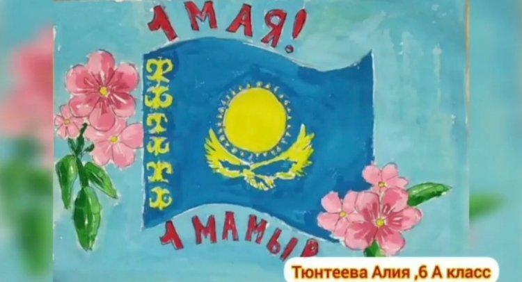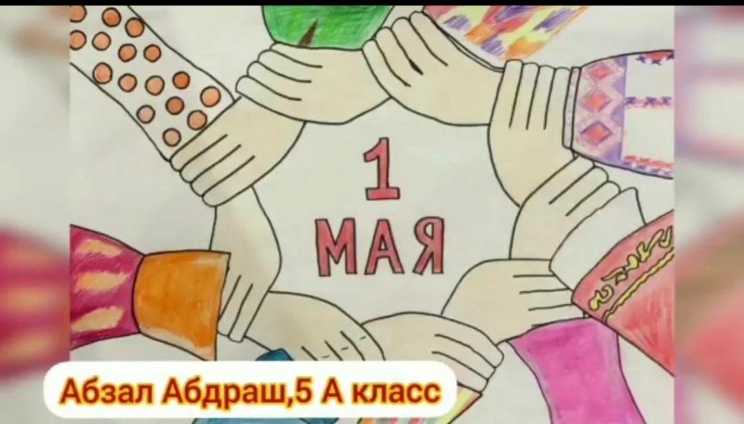 Онлайн выставка рисунков, посвященная 1 Мая- Дню единства народов Казахстана. Учитель Казыбекова Ардак Нусипбаевна.
