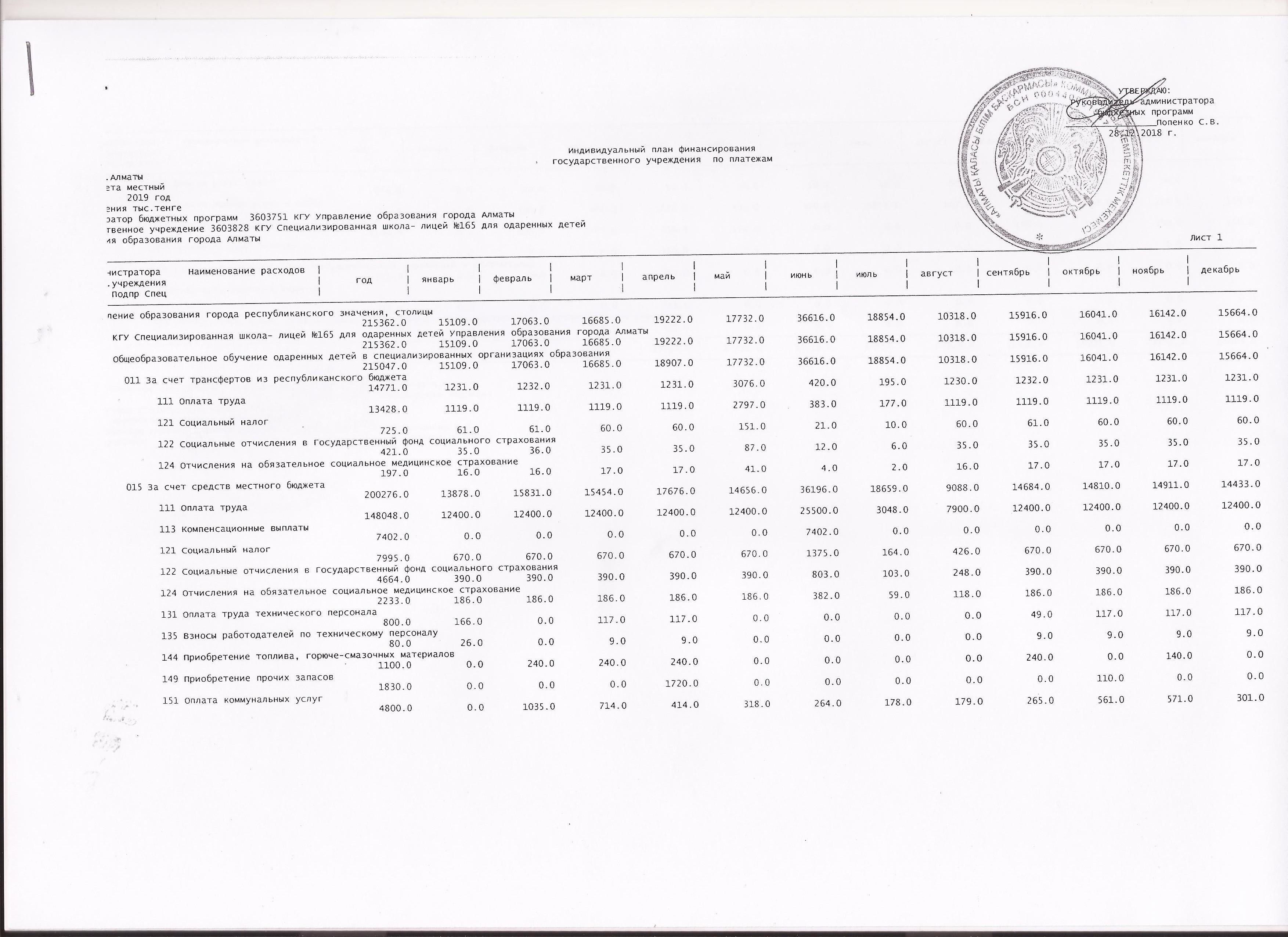 30 январь 2021 0 1 2 3 4 5 Индивидуальный план финансирования ГУ по платежам -2019 г. Осы беттің QR-коды:QR-код этой страницы: