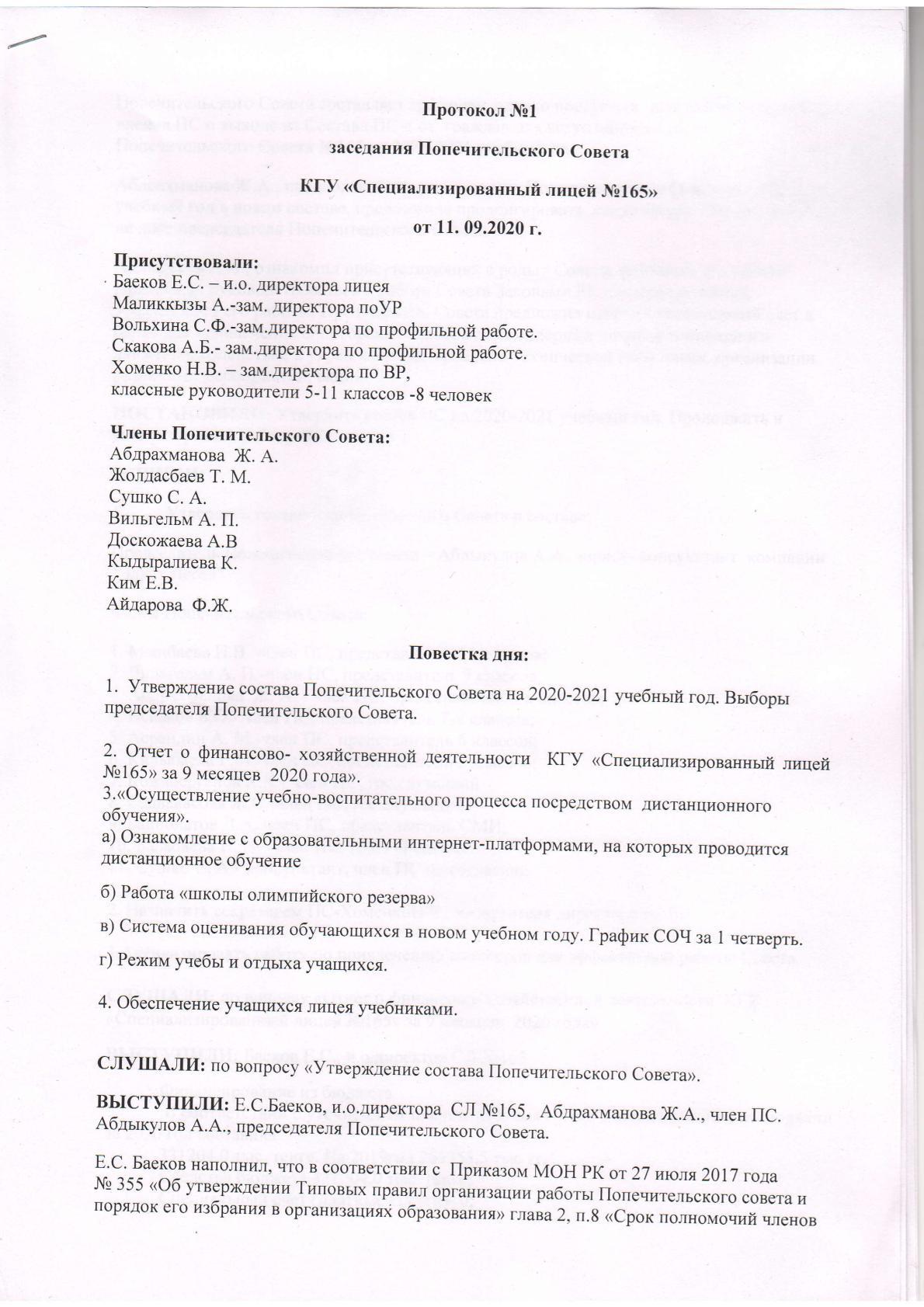24 ноябрь 2020 0 1 2 3 4 5 Протокол №1 заседания Попечительского совета КГУ "СЛ №165" Осы беттің QR-коды:QR-код этой страницы: