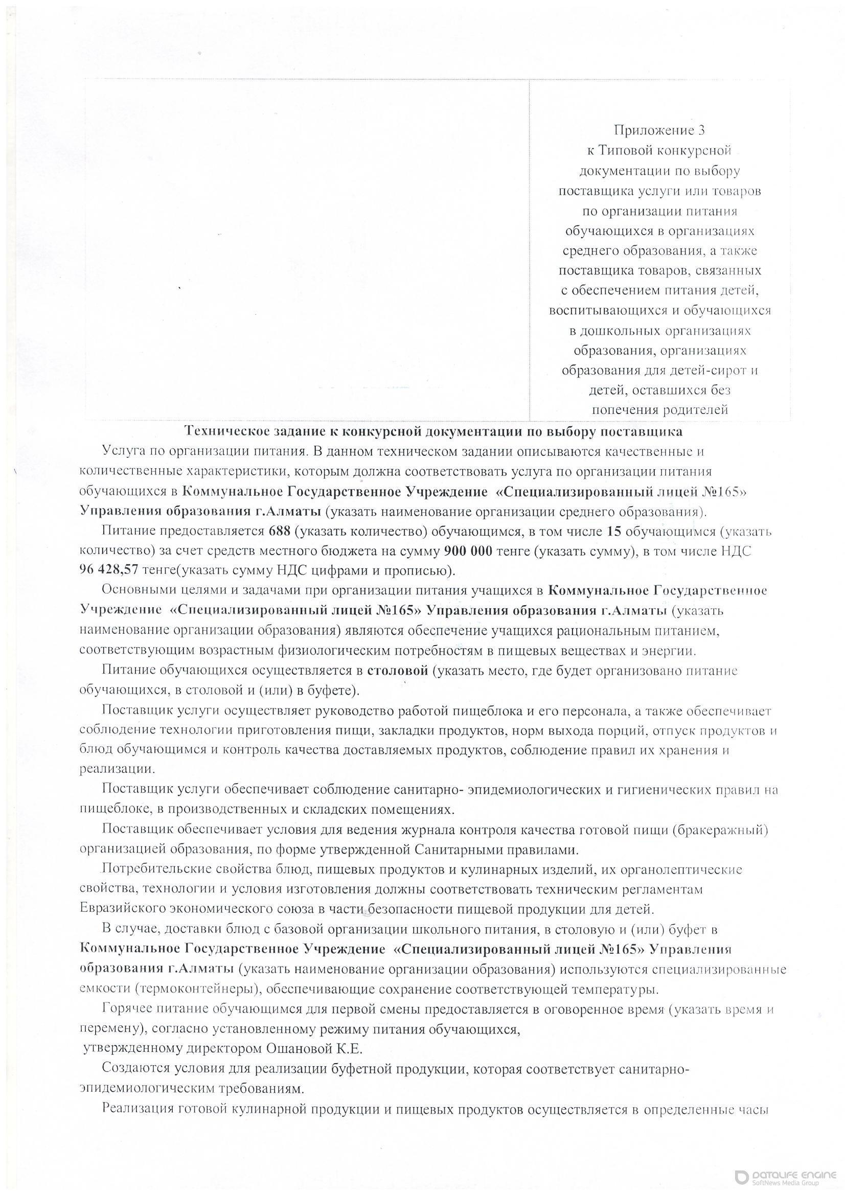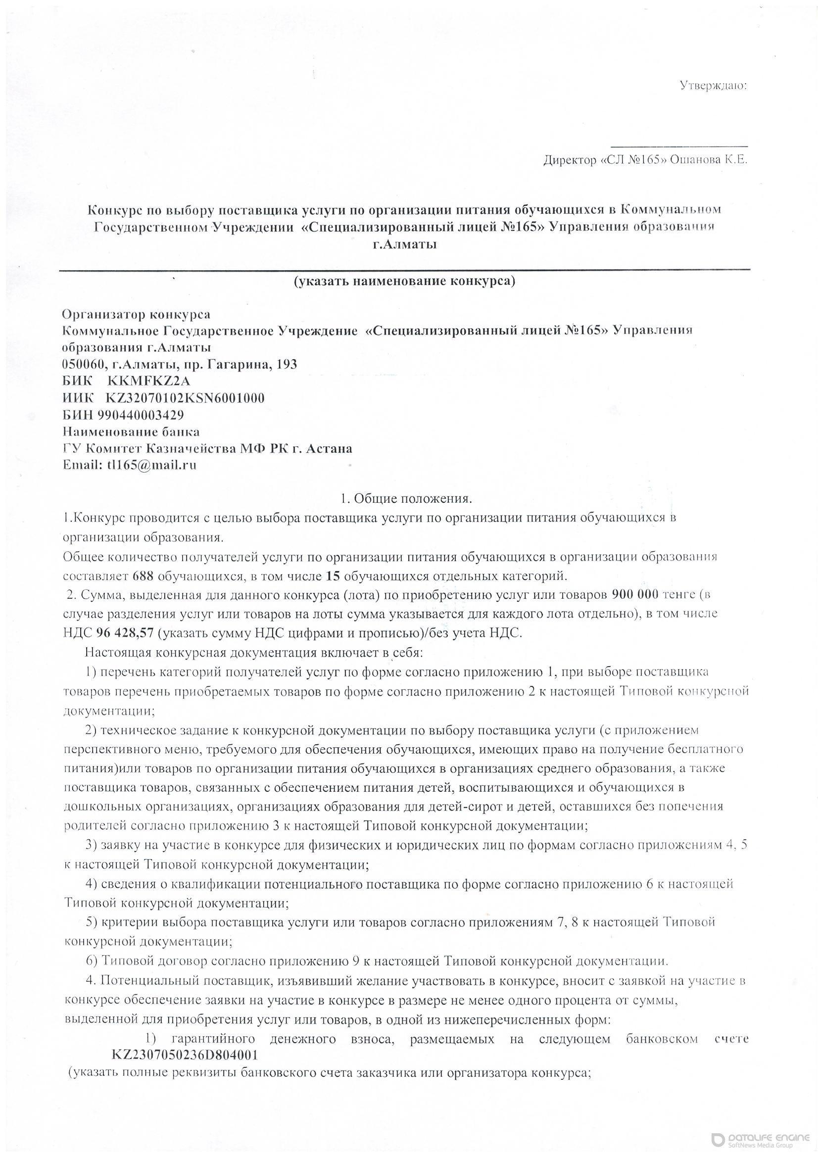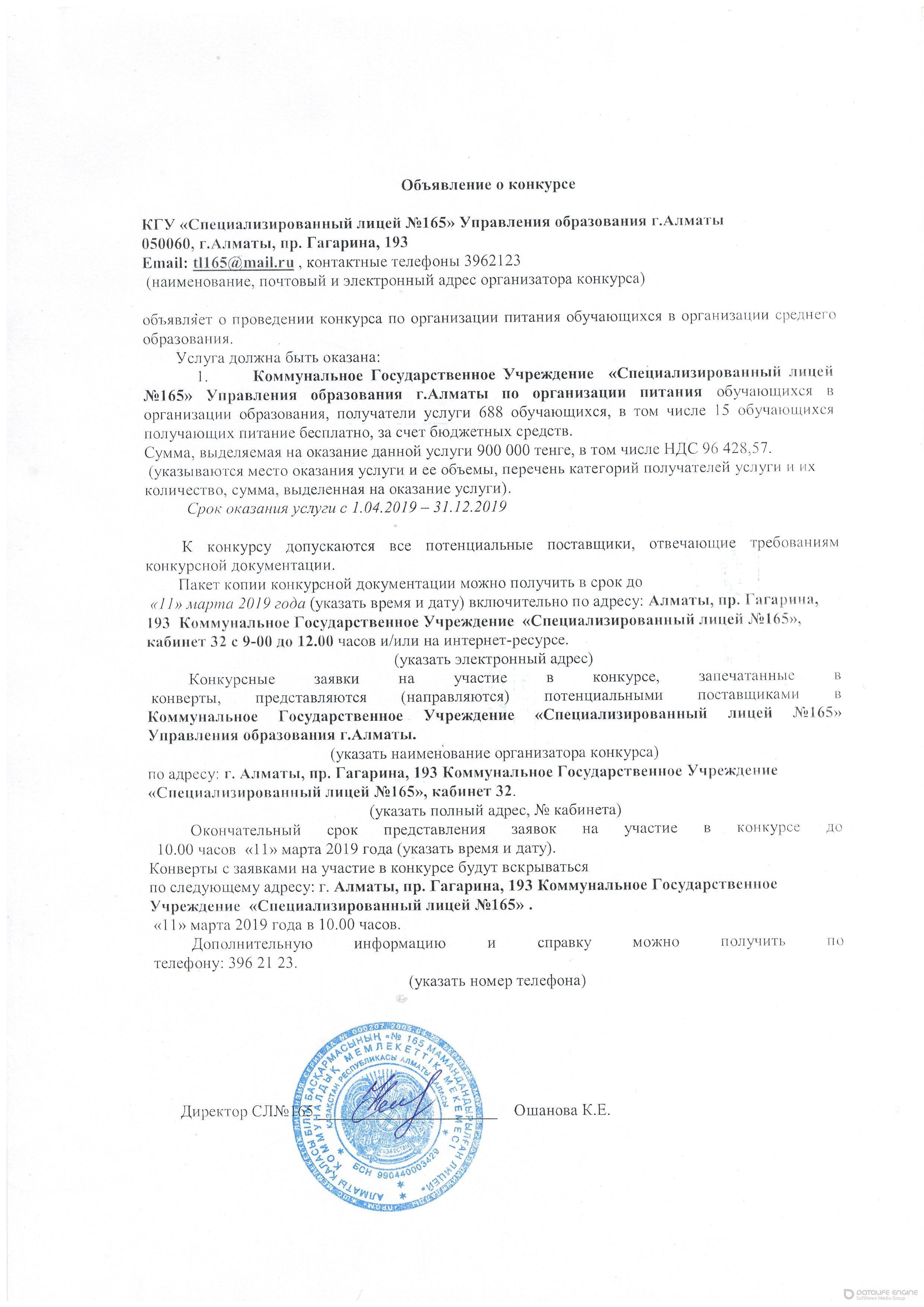 Объявление о конкурсе выбора поставщика питания