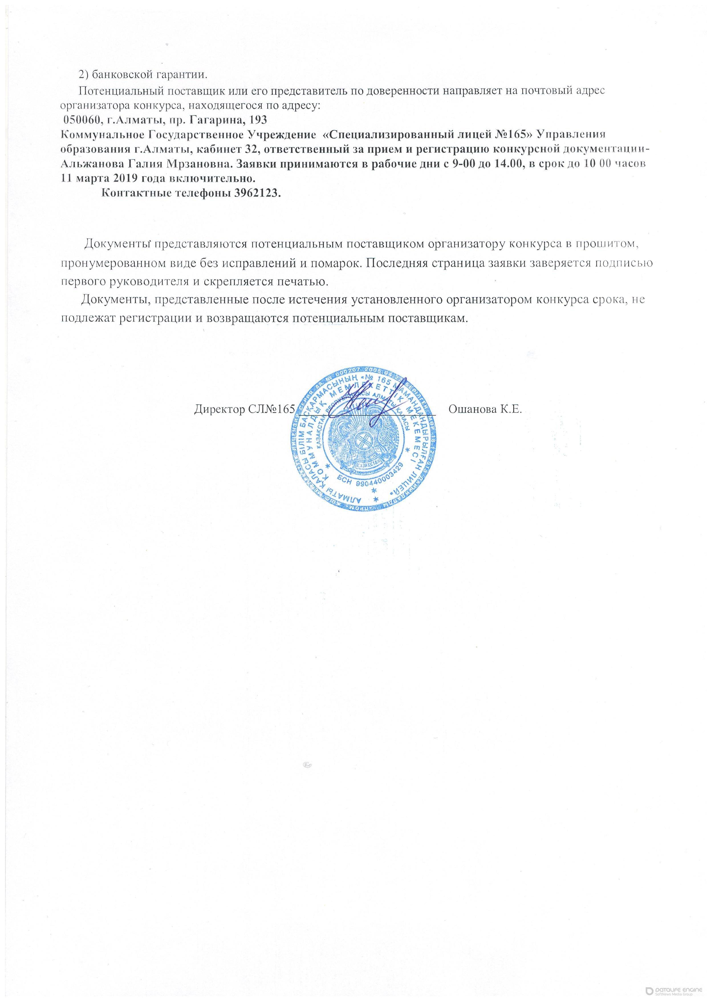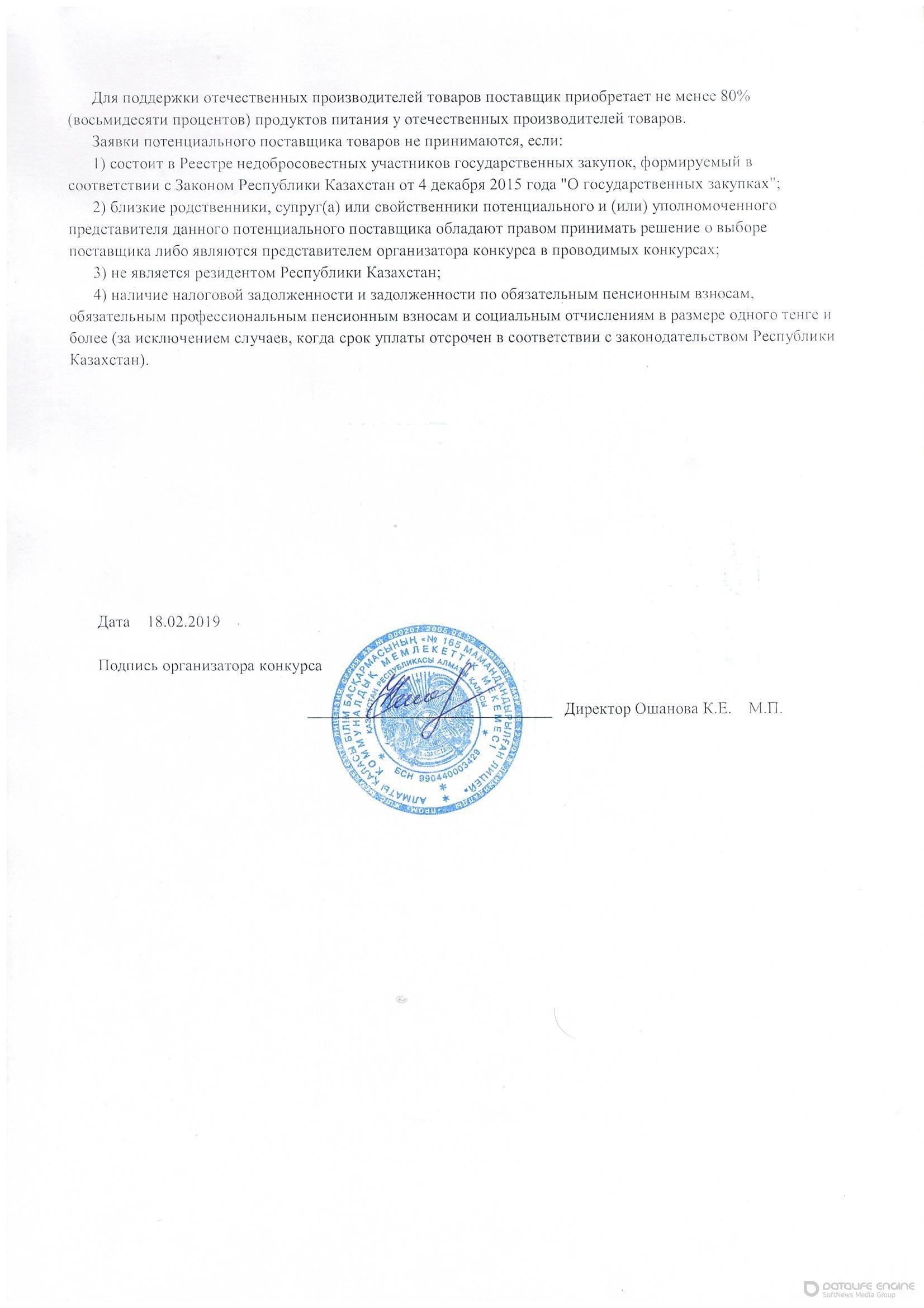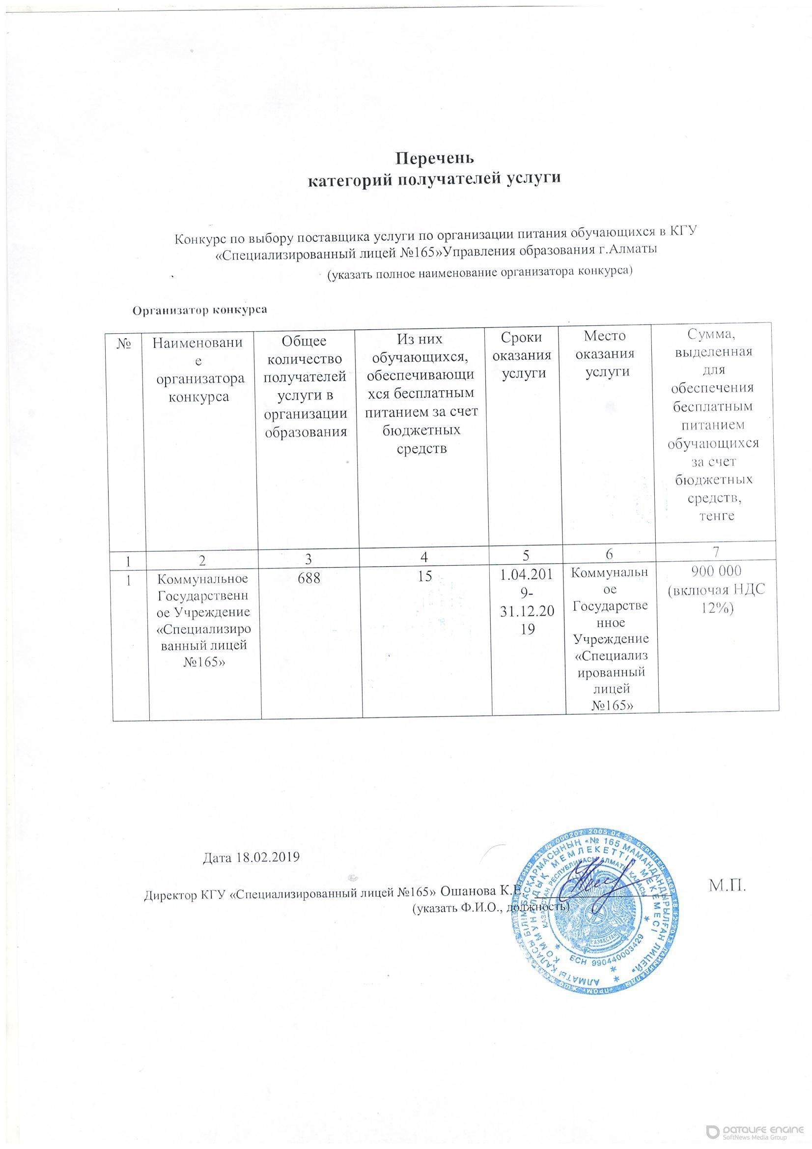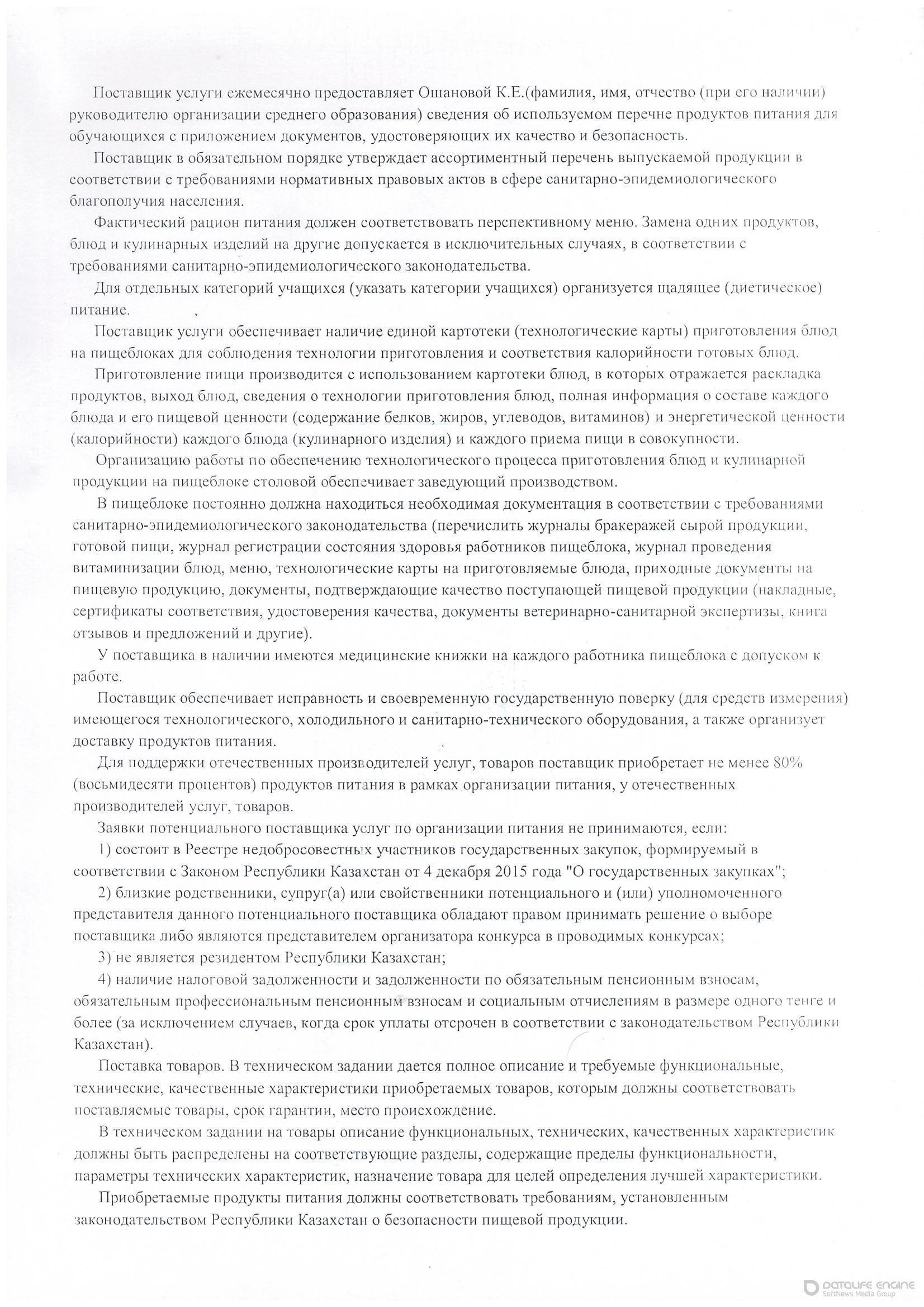 Объявление о конкурсе выбора поставщика питания